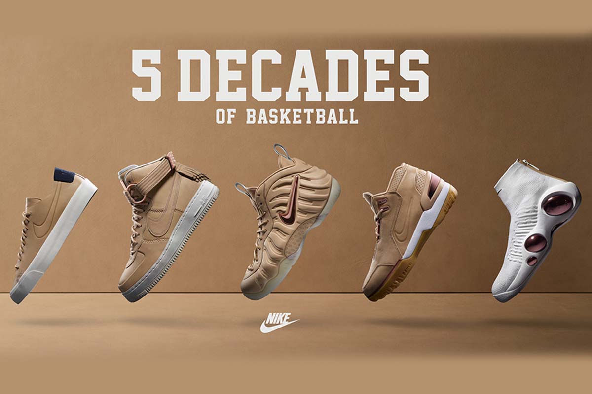 Lima sepatu yang menjadi bagian dari paket tersebut adalah Nike Blazzer Studio (1970), Air Force 1 High Lux (1980), Air Foamposite Pro (1990-an), Air Zoom Generation (2000-an) dan all-new Zoom Bonafide (2010-an). Semuanya tampil dengan warna Vanchetta Tan yang elegan serta tambahan aksen emas di beberapa bagian.