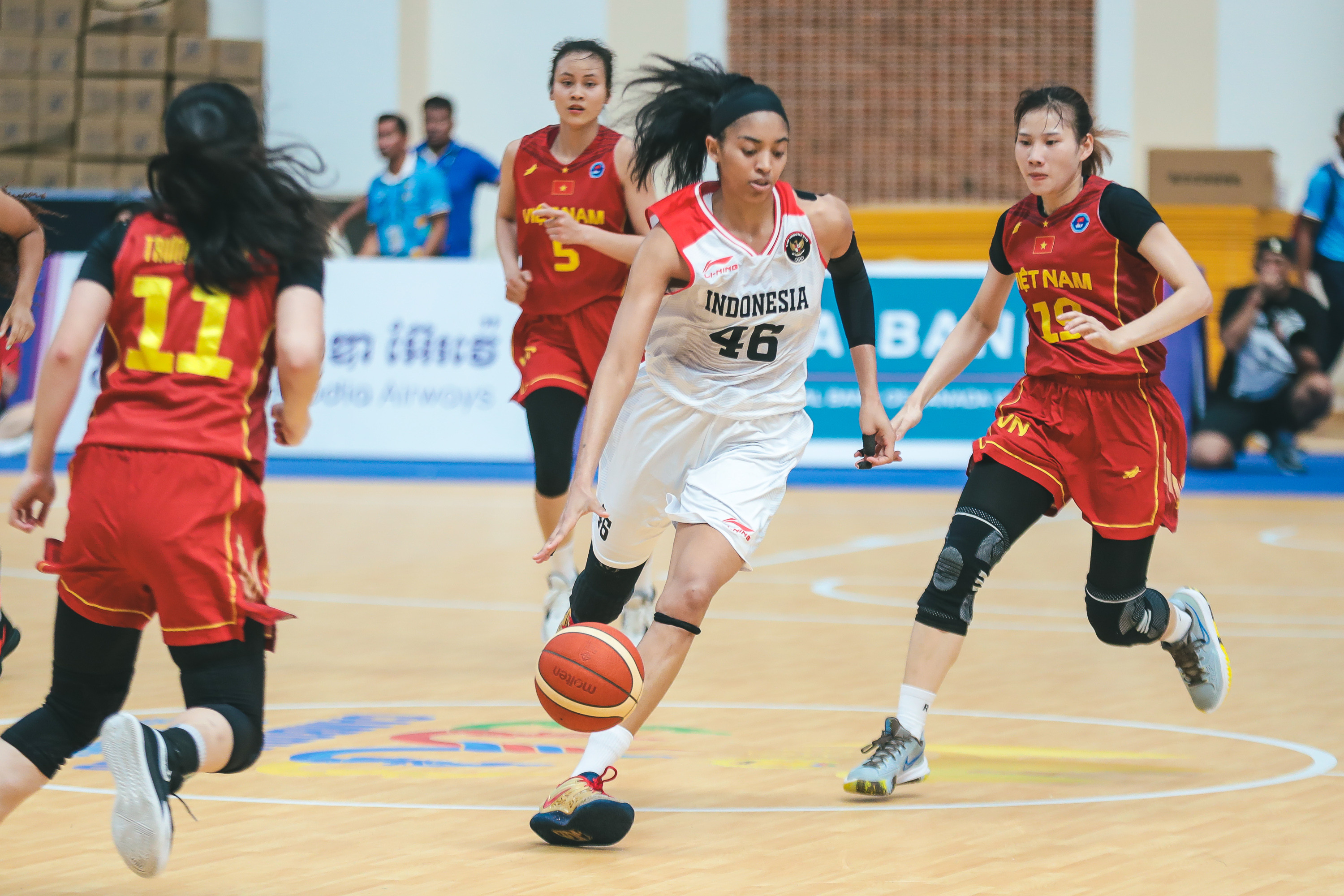 Timnas putri Indonesia membuka perjalanan di SEA Games 2023 dengan kemenangan 67-62 atas Vietnam, Selasa (9/5). Pertandingan berlangsung saling balas dan dalam jarak yang tak pernah dua digit.
