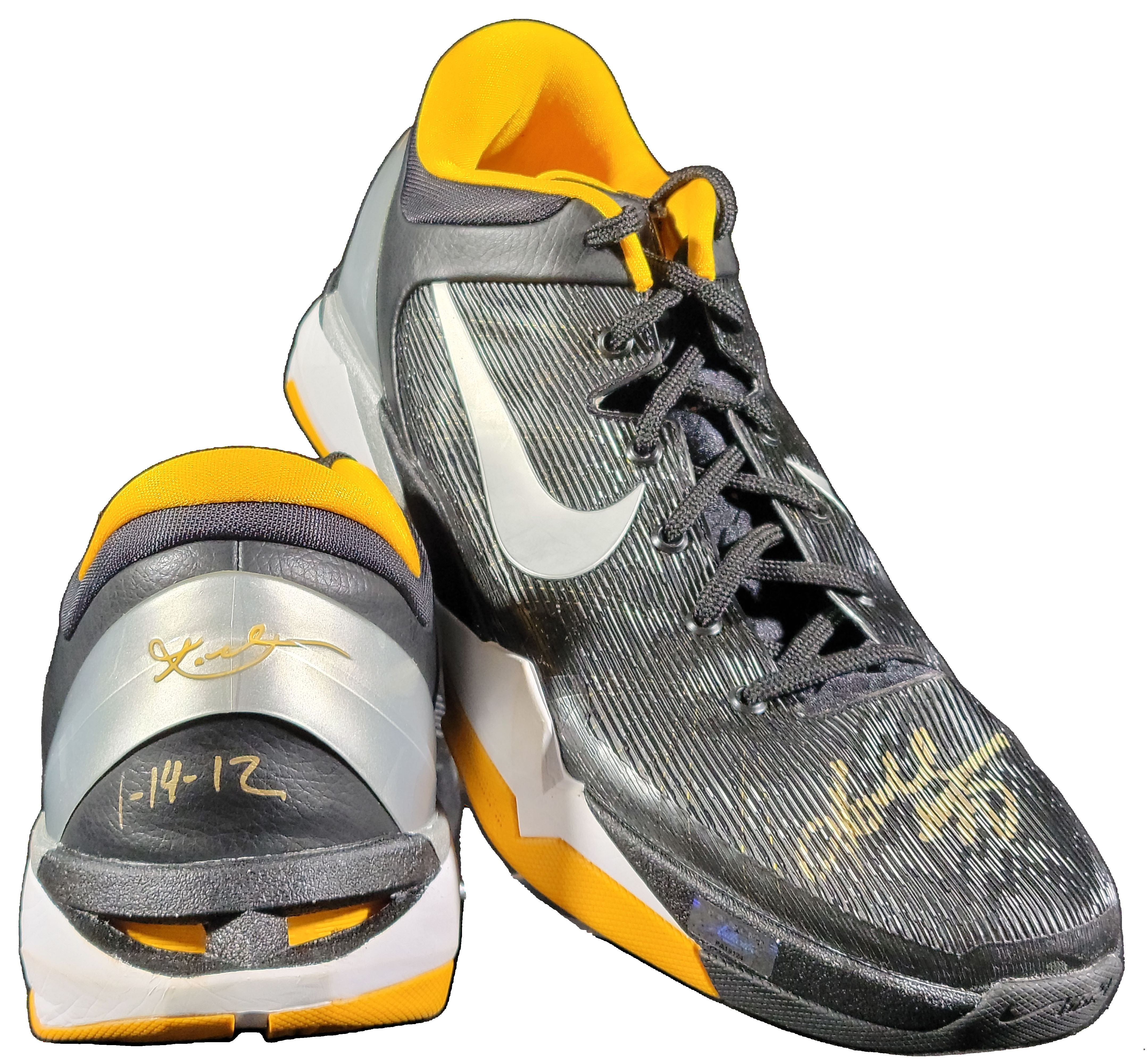 Kembali ke sepatu yang dilelang ini. Nike Kobe 7 "Supreme System" dengan warna hitam kombinasi kuning tersebut dipakai pada pertandingan melawan LA Clippers pada 14 Januari 2012. Kobe Bryant mencetak 42 poin pada pertandingan tersebut. Setelah bertanding, Kobe membubuhkan sebuah tanda tangan dengan tinta emas, lengkap dengan tulisan "1-14-12" dan "42 points" di bagian tumit.