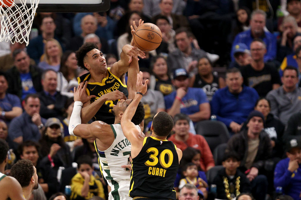 Giannis menutup laga dengan 23 poin, 7 rebound, 6 asis dari 8/15 tembakan. Namun, semua proses ia mencetak angka benar-benar tidak mudah. Tiga dari tujuh tembakan gagal Giannis bahkan diblok oleh ruki Warriors, Trayce Jackson-Davis. Bucks secara keseluruhan menembak hanya 38 persen (34/89), dan hanya memasukkan 11/39 tripoin (28 persen).