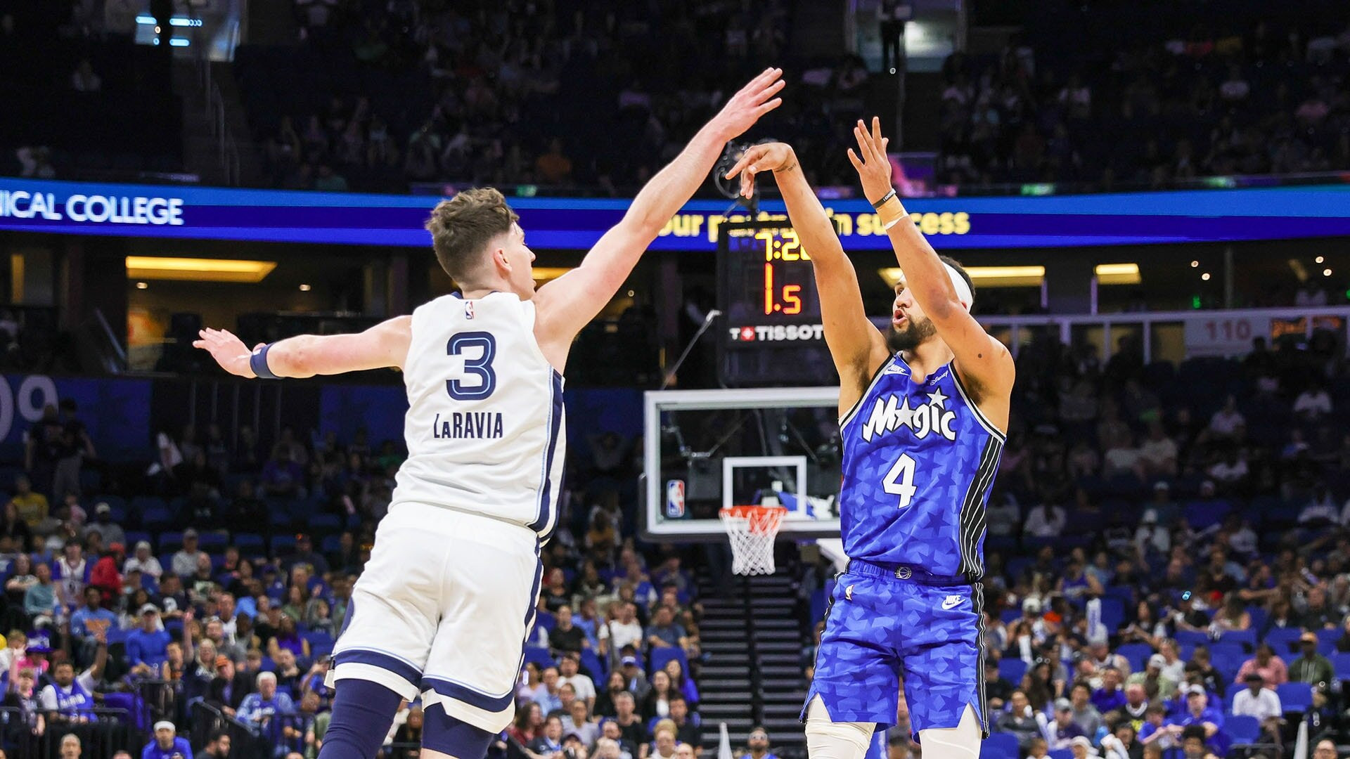 Memphis Grizzlies bermain dengan susunan pemain sementara, setelah Desmond Bane (sakit punggung) dan Santi Aldama (sakit) harus absen sebelum pertandingan. Magic memimpin dengan selisih 20 angka pada akhir kuarter pembukaan dan tidak pernah membiarkan Grizzlies yang kekurangan tenaga berada dalam jarak serang. Jordan Goodwin memimpin Grizzlies dengan 16 poin dan 11 rebound. Brandon Clarke menambahkan 13 poin dalam 20 menit pada gim keduanya setelah pulih dari cedera Achilles.