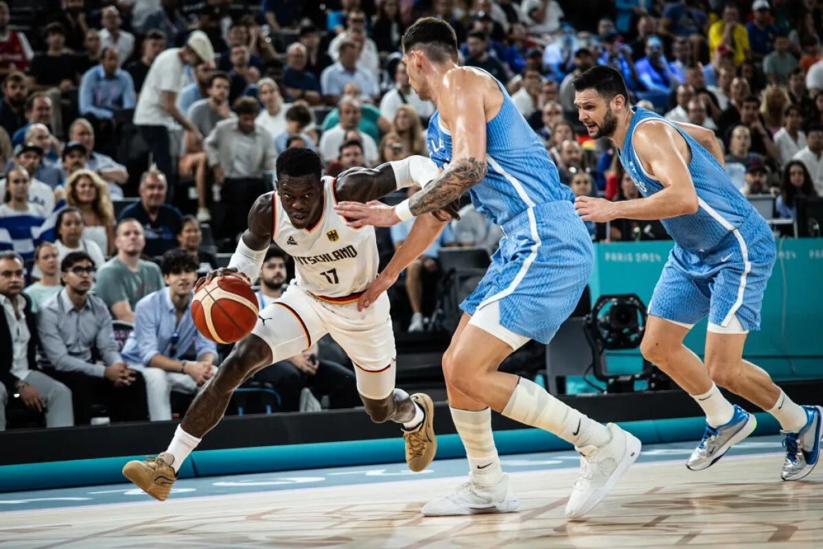 Jerman menjadi tim pertama yang melangkah ke semifinal Olimpiade Paris 2024. Mereka membungkam Yunani 76-63 di Bercy Arena (Accor Arena), Paris. Jerman memperpanjang rekor kemenangan 4-0.