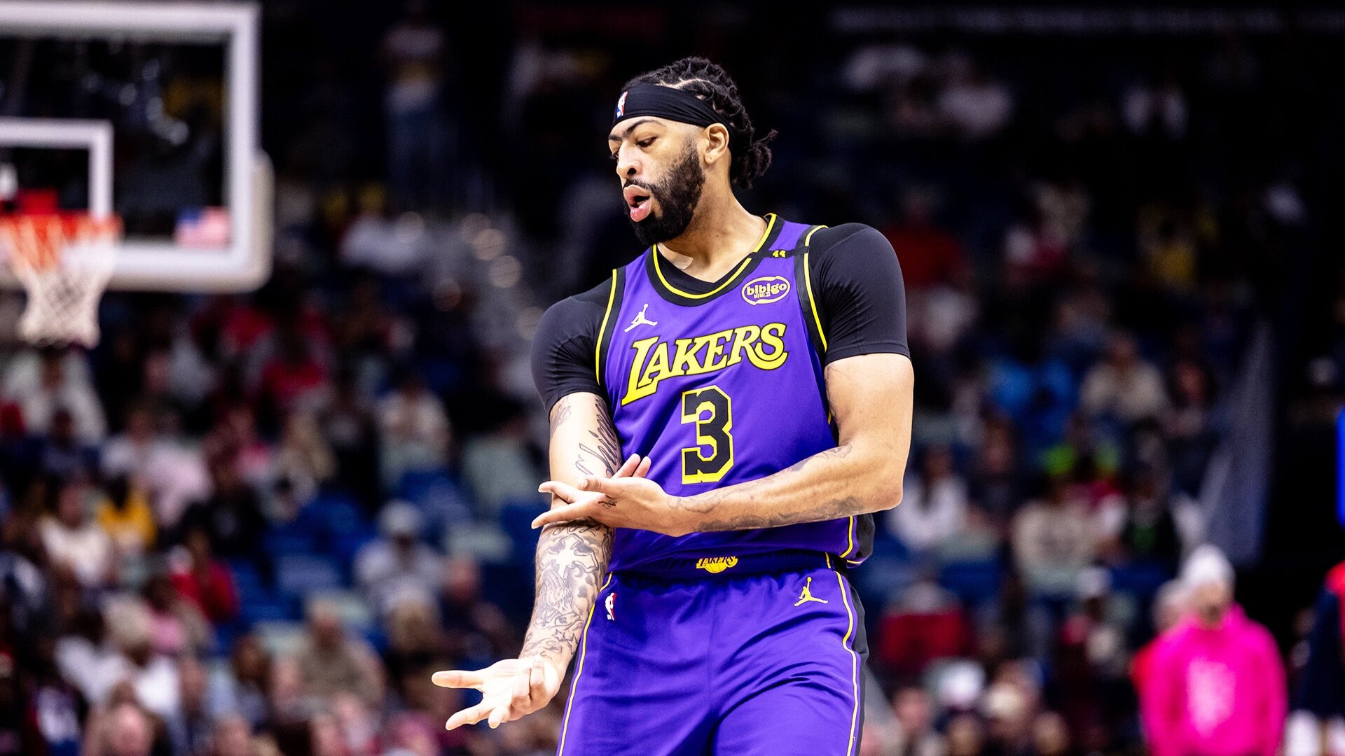 Anthony Davis menyumbangkan 31 poin dan 14 rebound dan Los Angeles Lakers memperpanjang kemenangan beruntun mereka menjadi lima pertandingan dengan kemenangan 104-99 atas New Orleans Pelicans pada Sabtu malam. LeBron James menonjolkan penampilan 21 poinnya dengan sepasang tripoin yang krusial pada menit-menit akhir, tetapi rentetan tripel-dobel empat pertandingan sepanjang kariernya berakhir.