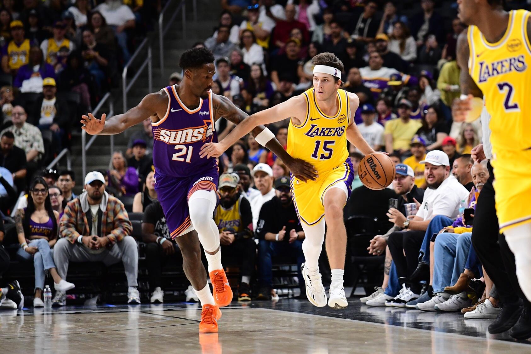Kedua bintang tersebut menyaksikan dari pinggir lapangan sementara pemain Lakers lainnya kalah dari Suns yang tampil dengan wajah baru, yang unggul 27 poin di kuarter ketiga. Austin Reaves mencetak 20 poin dan Bronny James menambahkan 8 poin. Bronny James mencetak tripoin di akhir kuarter ketiga untuk satu-satunya field goals, dia melakukan 1 dari 7 percobaan tripoin.