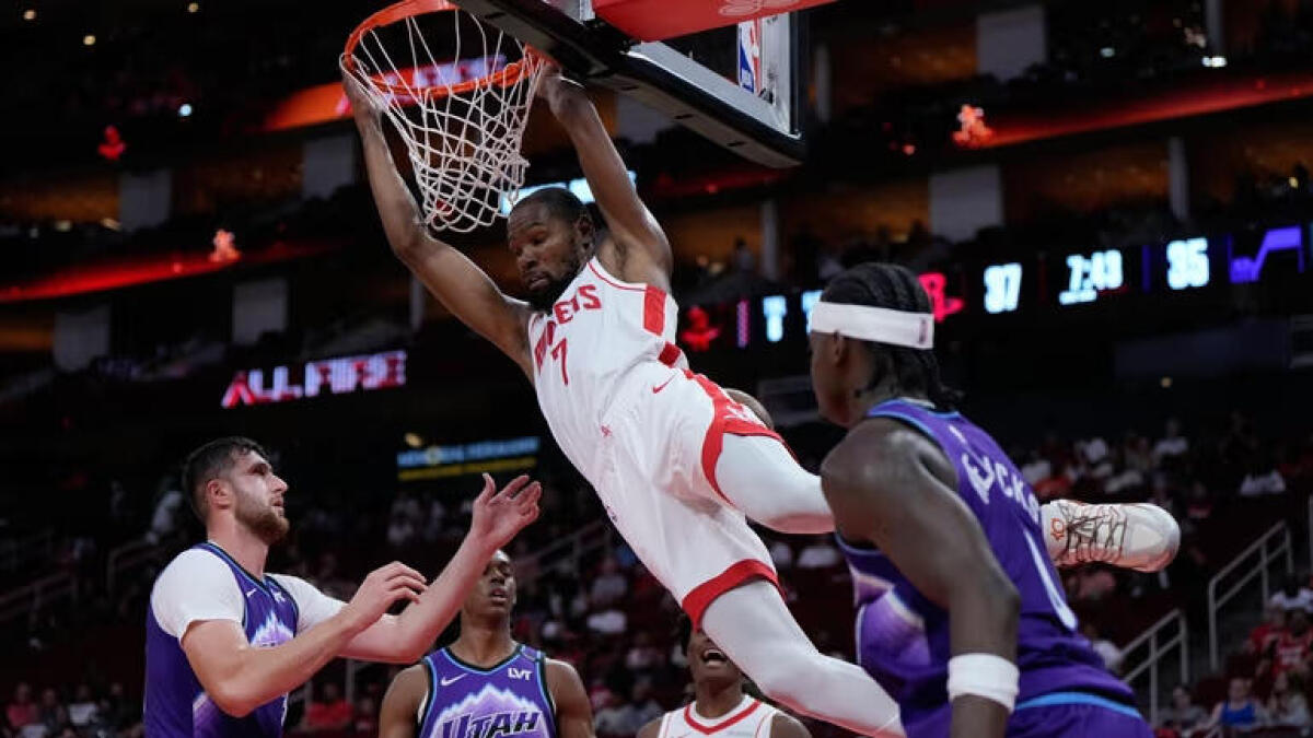 Itu hanya pertandingan pramusim, tetapi pertandingan eksibisi kandang pertama kalinya bagi Kevin Durant mengenakan seragam Rockets. Meski menit bermainnya terbatas, penampilan Durant jelas tidak mengecewakan dalam kemenangan Houston 140-127 atas tim tamu Utah Jazz.