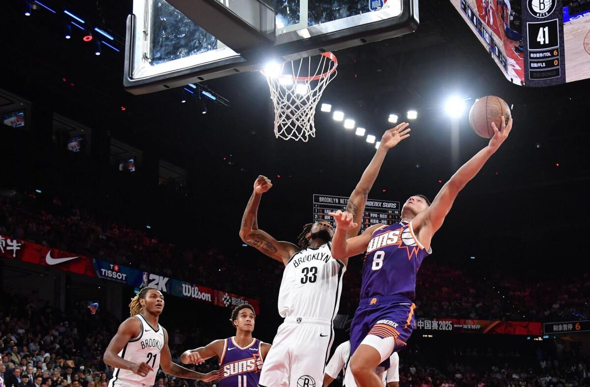 Phoenix Suns bangkit dari ketertinggalan hingga 18 poin untuk mengalahkan Brooklyn Nets 132-127 dalam perpanjangan waktu di pertandingan pramusim pertama dari dua pertandingan di NBA China Games, yang berlangsung di Makau, Tiongkok, Jumat malam (10/10). Phoenix bermain apik sepanjang malam, mencetak 42 poin dari 34 turnover Nets dan meraih 22 rebound ofensif.