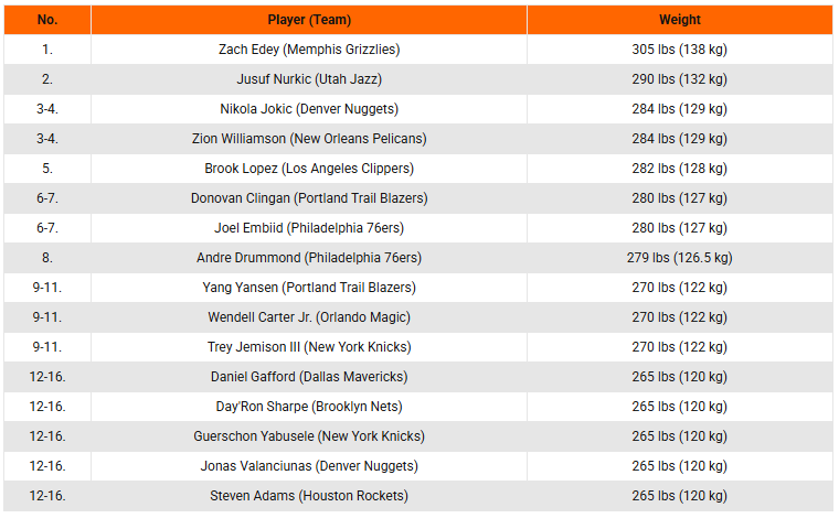 Di masa lalu, kita telah menyaksikan beberapa pemain NBA terberat sepanjang masa, seperti Shaquille O'Neal dengan berat 188 kg, mendominasi liga. Secara resmi, Shaq tercatat memiliki berat 147,4 kg selama Lakers 3-peat dari tahun 2000 hingga 2002. Tapi berat badannya terus bertambah setelah itu.