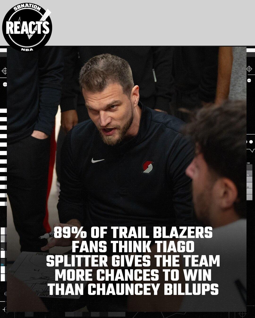 Awal minggu ini SB Nation mengadakan jajak pendapat yang menanyakan kepada penggemar Trail Blazers apakah menurut mereka Tiago Splitter memberi klub mereka peluang menang yang lebih baik daripada mantan pelatih yang diskors, Chauncy Billups.