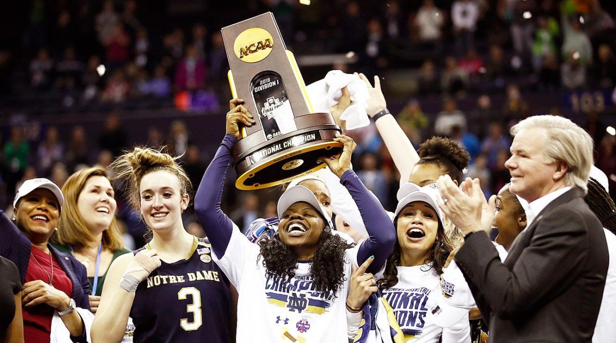 Ini merupakan gelar pertama yang diraih Notre Dame dalam 17 tahun terakhir, sekaligus gelar kedua dalam sejarah tim. Meski begitu, Notre Dame total telah melaju ke final sebanyak enam kali dan selalu kalah dalam empat laga lainnya. Gelar juara pertama yang mereka raih terjadi pada 2001 lalu di bawah asuhan Kepala Pelatih Muffet McGraw.