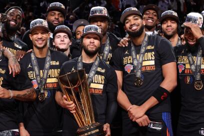 MVP NBA Cup, Jalen Brunson, mencetak 25 poin dan 8 asis saat Knicks memenangkan pertandingan keenam berturut-turut dan ke-10 dalam 11 pertandingan terakhir mereka, meskipun final turnamen tidak dihitung dalam klasemen dan statistik musim reguler.