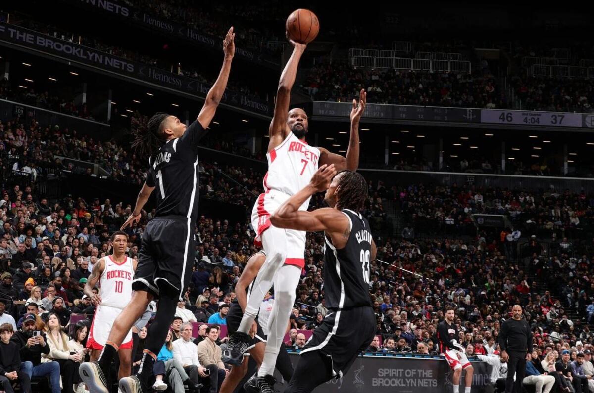 Kevin Durant mencetak 22 poin dan 11 asis (tertinggi musim ini), Amen Thompson mencetak 23 poin, dan Houston Rockets mengalahkan Brooklyn Nets, 120-96, pada Kamis malam (1/1) waktu AS, untuk kemenangan keempat beruntun mereka. Dengan kehilangan tiga perlima dari susunan pemain inti mereka, Nets mengalami kekalahan telak dari Rockets di hadapan 18.003 penonton yang memenuhi Barclays Center.