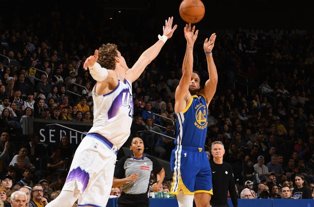 Warriors (19-17) menghapus kekalahan telak yang mengecewakan dari Oklahoma City Thunder pada Jumat malam dengan kemenangan 123-114 atas Utah Jazz, di mana Curry mencetak 6 tembakan tripoin dan menyumbangkan 31 poin, 20 di antaranya dicetak pada kuarter ketiga.