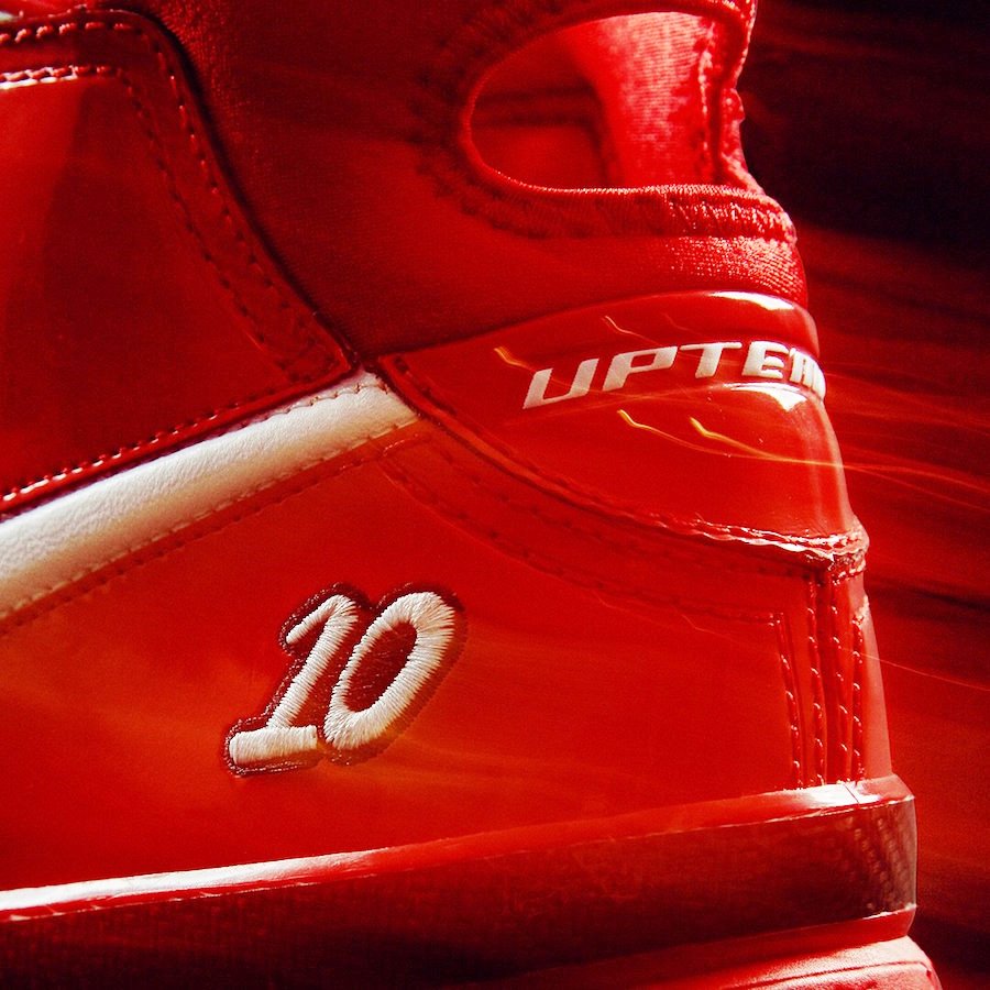 Sepatu spesial pertama DeRozan ini memakai warna merah menyala seperti warna seragam timnya. Detail nomor punggungnya, 10, tersemat di bagian tumit samping. Tulisan “Uptempo” juga tersemat di bagian ujung belakang sepatu. Pelindung tumit (heel counter) berbahan fiber karbon tersemat sebagai penyempurna.