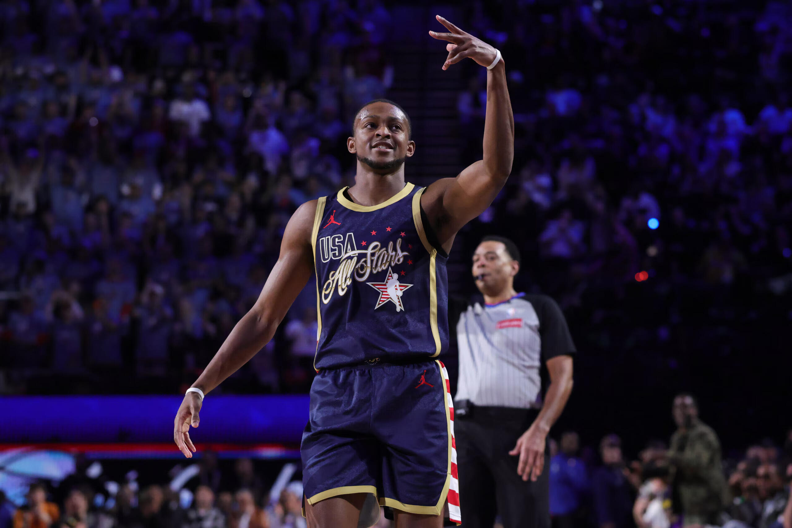 Tim Stripes tetap memegang kendali dengan keunggulan 33-27 dan sisa waktu 2:37. Jaylen Brown memimpin dengan 11 poin. Anthony Edwards membawa Tim Stars unggul 40-39 di akhir pertandingan dengan 5 poin beruntun di menit terakhir, termasuk lemparan tiga angka dengan sisa waktu 19,5 detik.