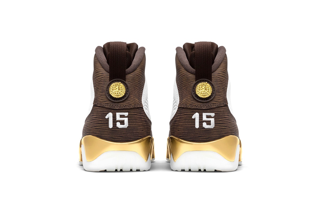 Seri Air Jordan yang diambil untuk edisi ini adalah Air Jordan 9. Sepatu yang diperkenalkan pertama kali pada 1993 ini jadi yang paling Melo sukai di antara 32 seri sepatu hasil kolaborasi Nike dan Michael Jordan. Warna yang diaplikasikan terinspirasi dari warna piala NCAA, yaitu putih berpadu dengan cokelat beraksen emas. Sebagai pelengkap, nomor 15 diletakkan di bagian tumit representasi nomor punggung Melo semasa kuliah.