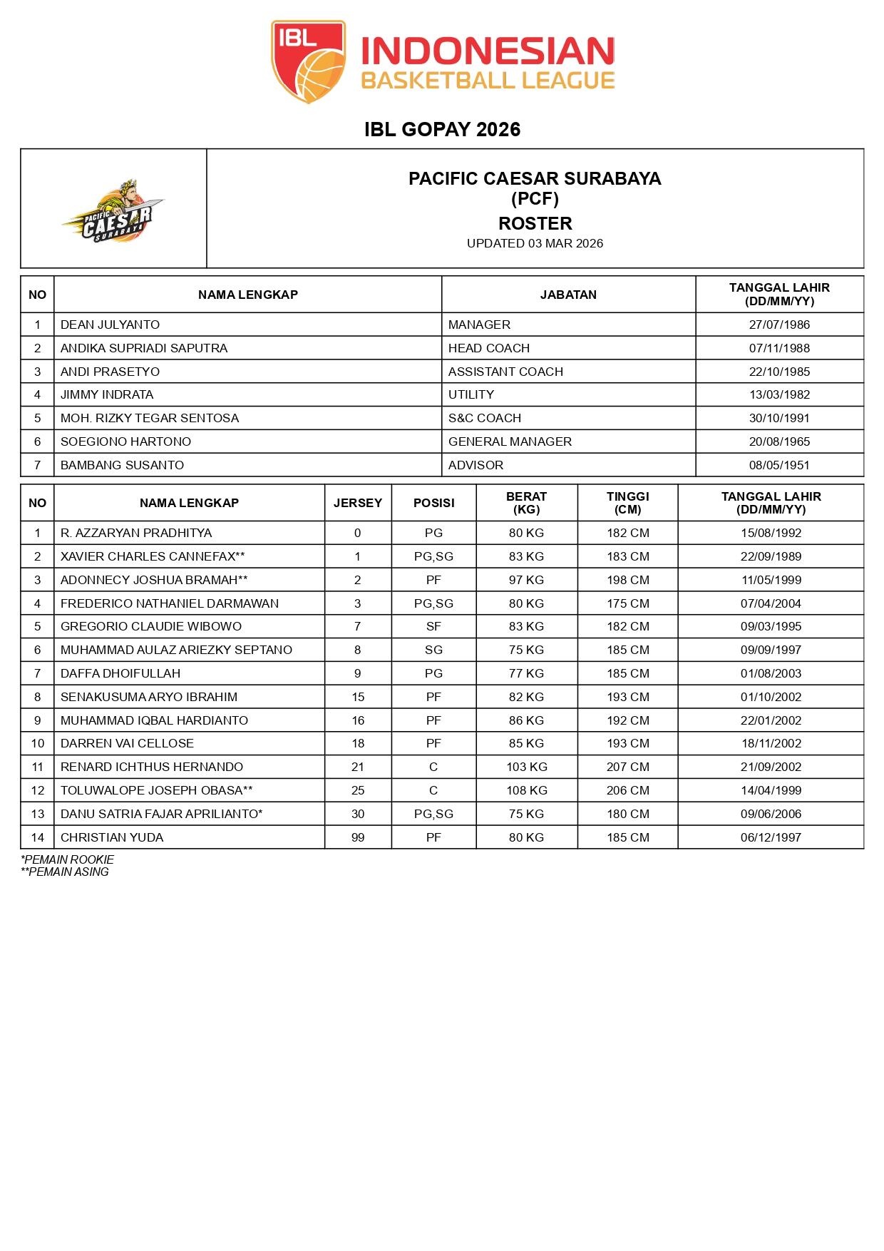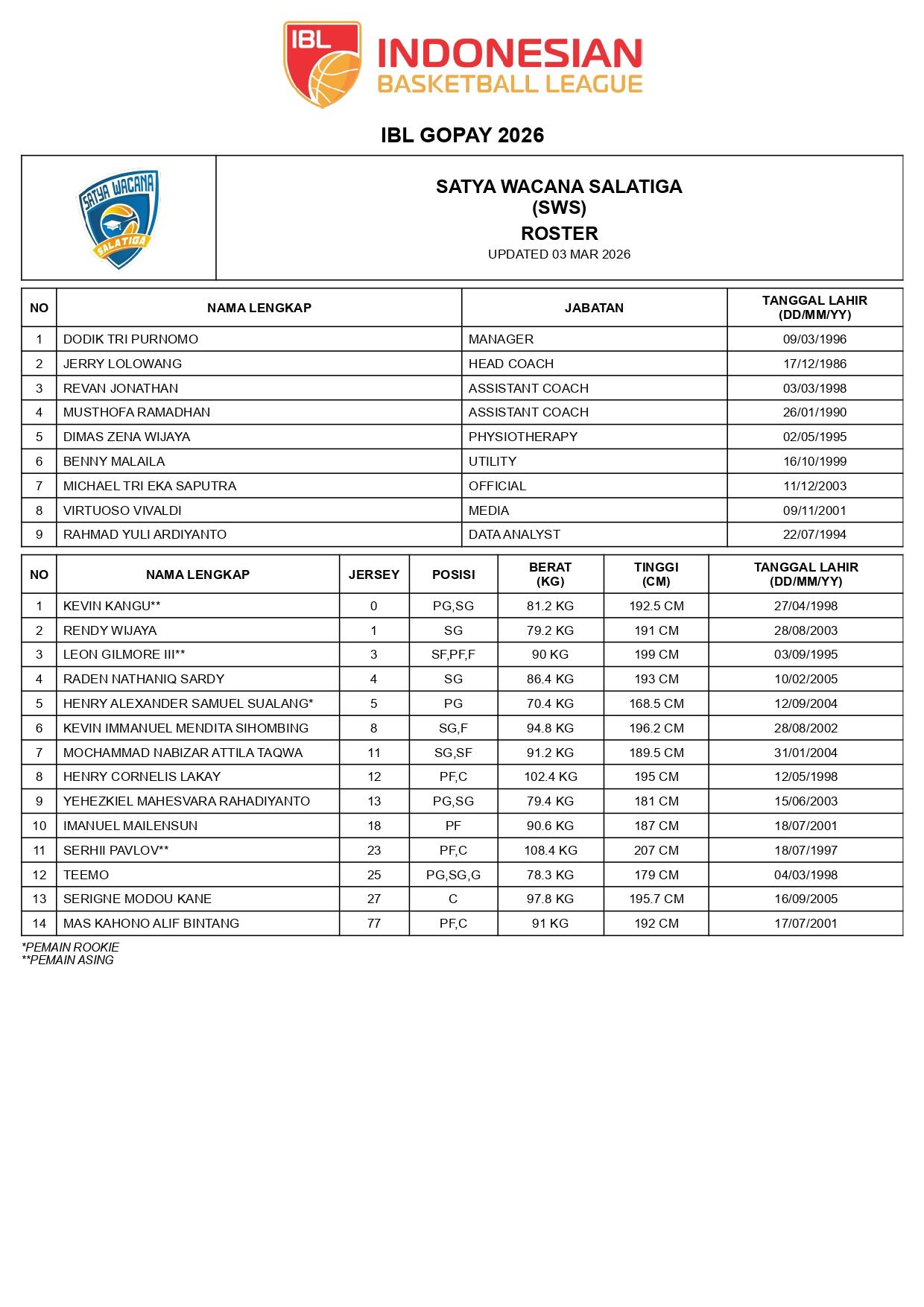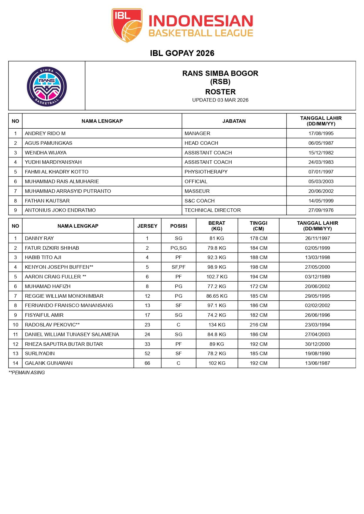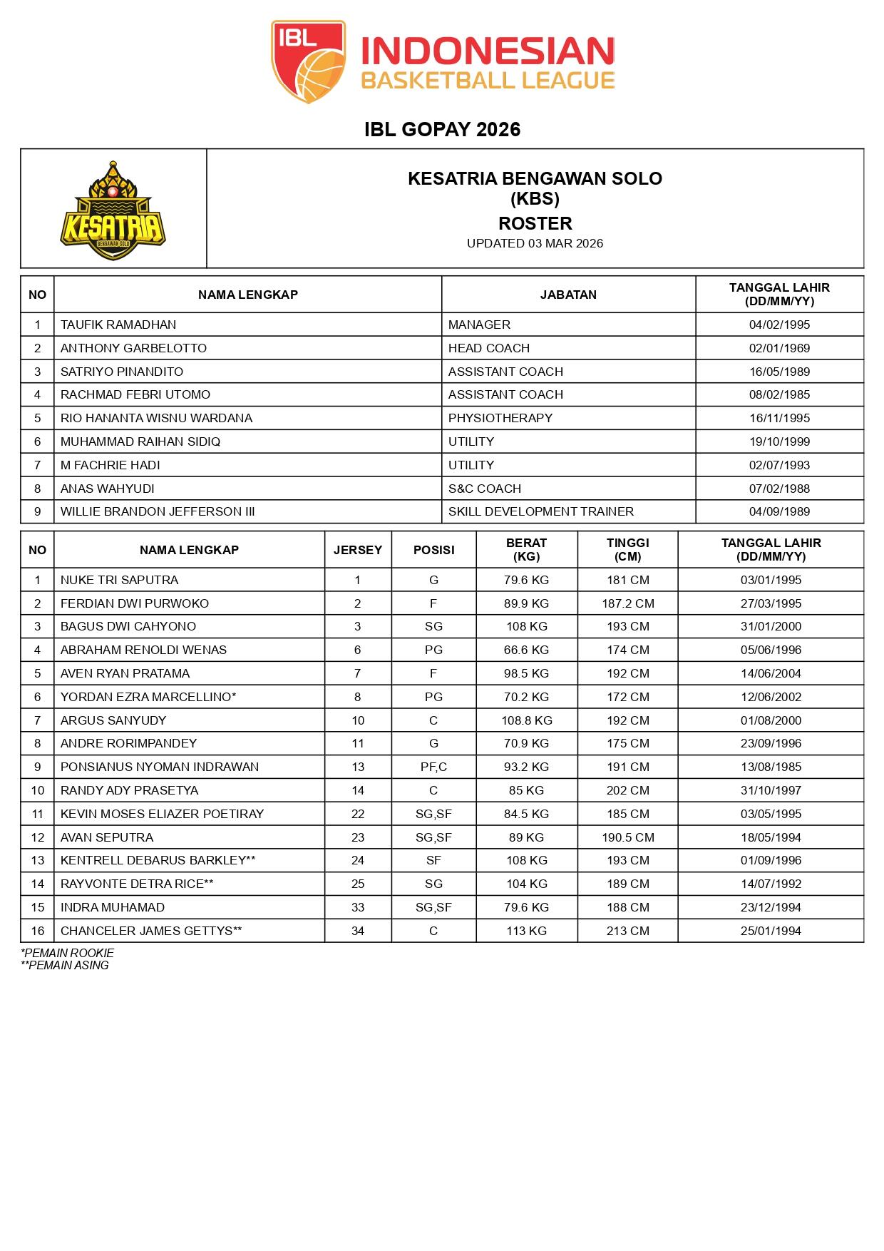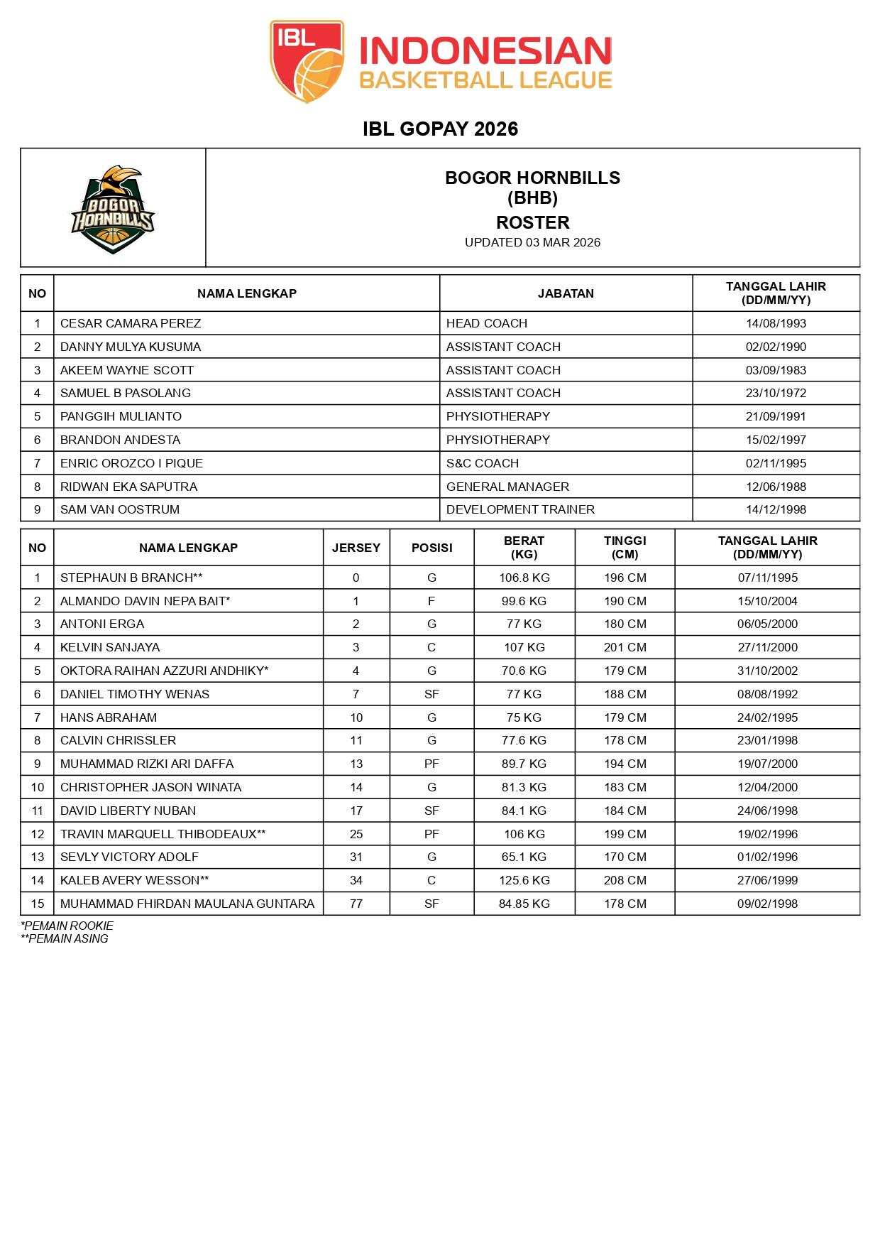 Perubahan-perubahan tersebut terangkum dalam roster IBL 2026 putaran kedua yang dirilis liga, sehari sebelum pekan kedelapan dimulai. Berikut roster lengkap IBL 2026 putaran kedua: