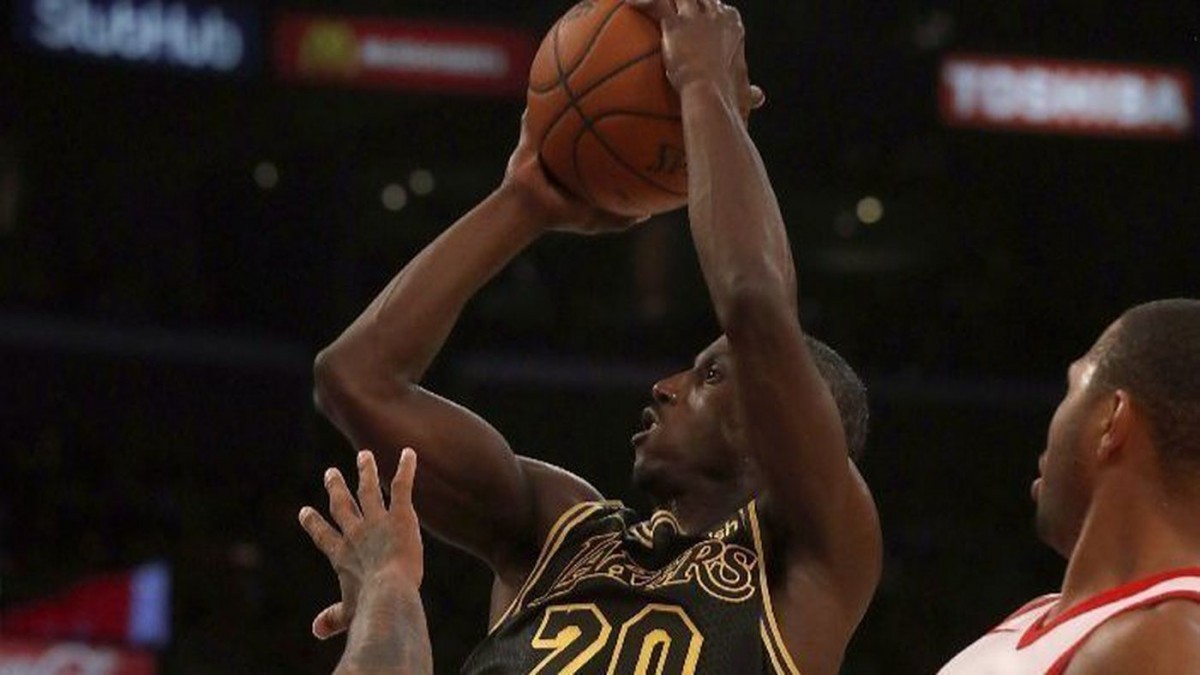 Andre Ingram, garda, 32 tahun, saat pertama kali bermain di NBA bersama Los Angeles Lakers hari ini, Selasa, 10 April 2018 waktu setempat. Foto: Mark J. Terril/AP