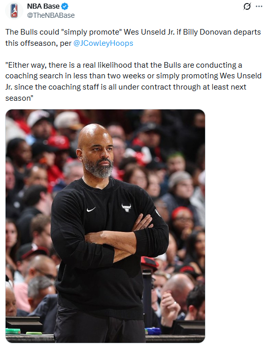 "Bagaimanapun juga, ada kemungkinan besar bahwa Bulls akan melakukan pencarian pelatih dalam waktu kurang dari dua minggu atau sekadar mempromosikan Wes Unseld Jr. karena seluruh staf pelatih masih terikat kontrak setidaknya hingga musim depan," tulis Cowley.