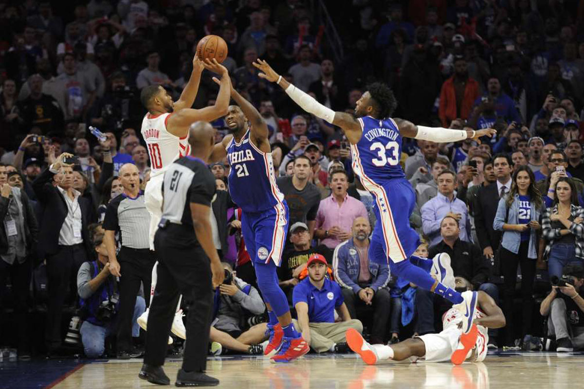 Ketika buzzer berbunyi, semua usaha Philadelphia 76ers untuk menahan laju Houston Rockets akhirnya gagal. Rockets mencuri kemenangan di rumah Sixers dengan keunggulan tipis 105-104, lewat tembakan tiga angka Eric Gordon bersamaan dengan buzzer.