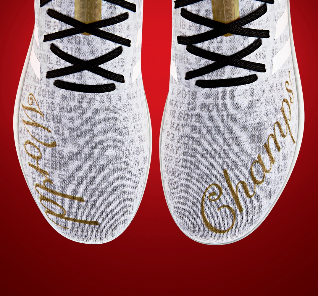 Sekujur bagian atasnya dibubuhi catatan skor pertandingan babak Playoff musim lalu. Bagian tumit luarnya terbordir logo bola basket yang sedang digenggam cakar hewan purbakala Velocyraptors yang jadi simbol hewan tim ini. Lidahnya tersemat panel berwarna emas yang jadi representasi cincin juara yang baru saja mereka dapat sebulan lalu.