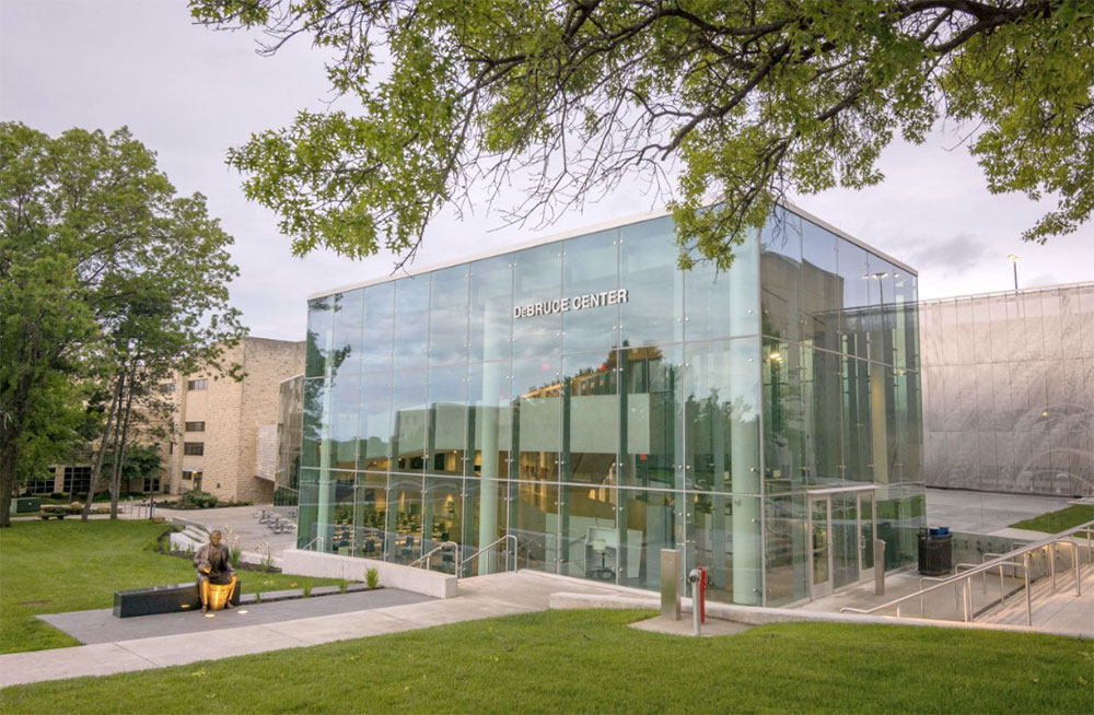 DeBruce Center bukanlah museum besar dan megah. Sangat sederhana, minimalis, dengan kafe dan gift shop untuk pengunjung. Di bagian luarnya, ada patung Naismith duduk dengan keranjang buah peach, yang merupakan ''ring basket'' orisinal. Patung serupa juga berada di kota kelahiran Naismith di Kanada.
