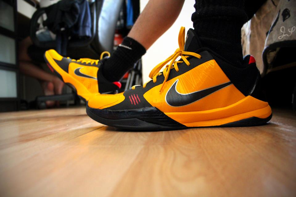 Bermodal kekaguman tersebut, Kobe berupaya menghormati mendiang Bruce Lee dengan caranya sendiri, yaitu meminta secara khusus ke Nike membuatkan siluet Kobe edisi Bruce Lee. Itu terjadi pada tahun 2010. "The Black Mamba" memutuskan untuk mendesain ulang Nike Kobe Zoom V dengan motif Bruce Lee. Kobe mengubah warna menjadi kuning, dengan kombinasi hitam. Warna yang identik dengan jumpsiut milik Bruce Lee dalam film "Game of Death" (1978). Kobe juga menambahkan empat garis merah di sisi, menyerupai bekas luka cakaran di dada Bruce Lee saat muncul di film "Enter the Dragon (1973). Inilah cerita lahirnya Nike Zoom Kobe V Bruce Lee.