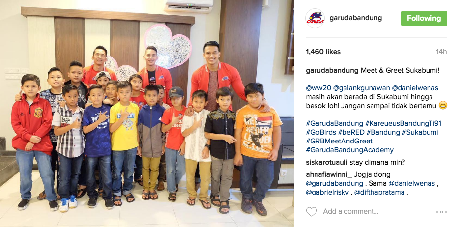 Indonesian Basketball League (IBL) 2016 telah usai. Jeda antarmusim menjadi luang bagi setiap tim untuk istirahat dan atau berbenah. Dalam kesempatan itu, Garuda Bandung menyempatkan diri menyapa para penggemar. Tiga pemain mereka melawat ke Cafe Kappe di Jalan Suryakencana No. 52, Kota Sukabumi, Jawa Barat, 27 Juni 2016.