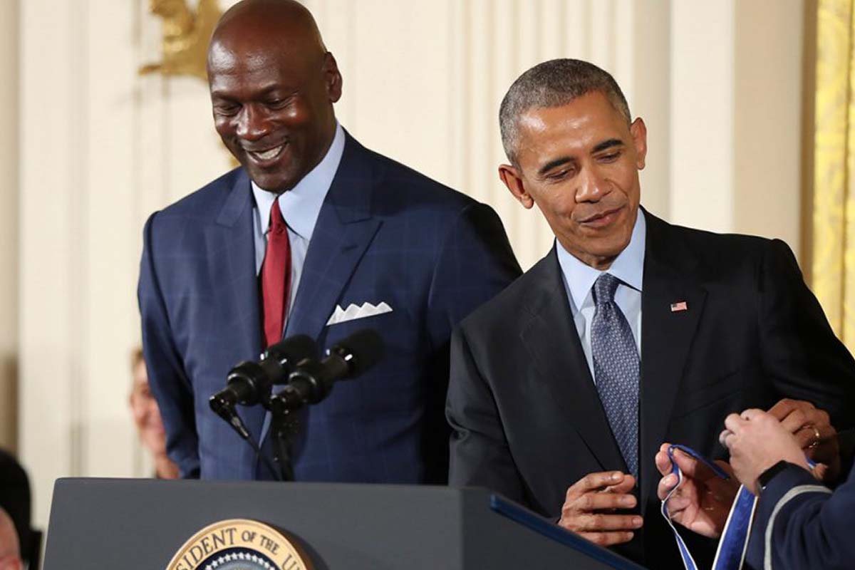 Obama memuji Jordan dalam pidatonya. Ia mengatakan "lebih dari sekedar simbol, lebih dari sekedar meme internet", ini lantaran beberapa waktu lalu meme Jordan menangis sangat viral di dunia maya. Obama juga menyanjung film Space Jam yang rilis tahun 1996. Film tentang basket yang dibintangi Jordan dan sekumpulan karakter kartun Loony Tunes.